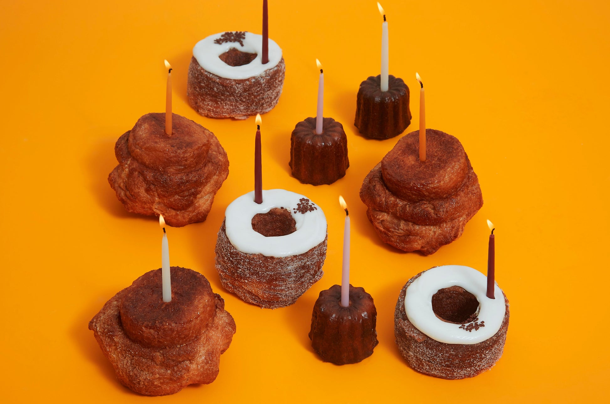 These elegant birthday candles are hand-dipped mini tapers made with natural beeswax and natural fragrance, each inspired by some of our favorite Cronut® flavors and pastry creations from years past.